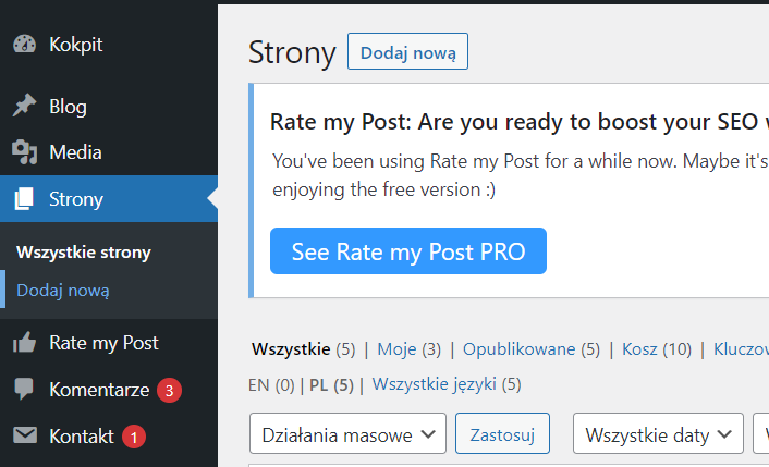 Przejdź do zakładki “Strony” a następnie “Dodaj nową“.